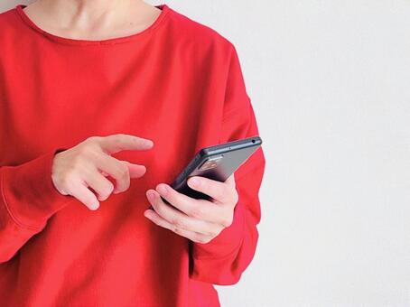 - 真っ赤なワンピースやコートを着ている